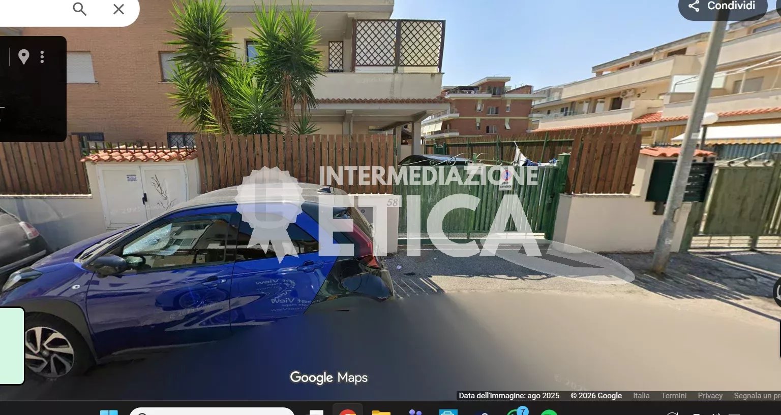 Piccolo appartamento ad uso abitazione categoria A/2; sito a Pomezia (RM) località Torvajanica, in via Svezia 58h; èl'int.4 al piano terra del fabbricato A di un edificio condominiale composto da due fabbricati speculari compiuti nel gennaio 2008. L'appartamento, avente altezza utile di m.2,80, è composto da soggiorno/pranzo con parete attrezzata a cucina, due camere di cui una con un piccolo bagno all'interno, un bagno più grande, un piccolo giardino alla quota della strada, e uno spazio pavimentato a terrazzo alla quota della porta di ingresso al soggiorno; la porzione di terrazzo in corrispondenza della porta di ingresso al soggiorno è coperta dal solaio sovrastante e costituisce una loggia/patio. Sul terrazzo esiste anche un armadio in muratura che contiene la caldaia. Esiste anche un ingresso pedonale in corrispondenza del passaggio comune che porta alla rampa di scale. L'esposizione è ad est, senza vista mare.