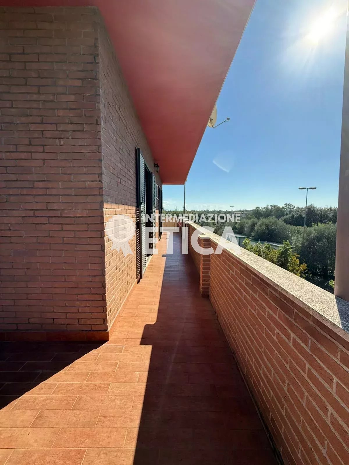 Al suo interno troviamo un ampio soggiorno, il corridoio che ci porta su due bagni finestrati, una camera da letto, una matrimoniale con bagno en suite, ambe due le stanze hanno l' accesso un terrazzo che avvolge l' immobile quasi per intero.